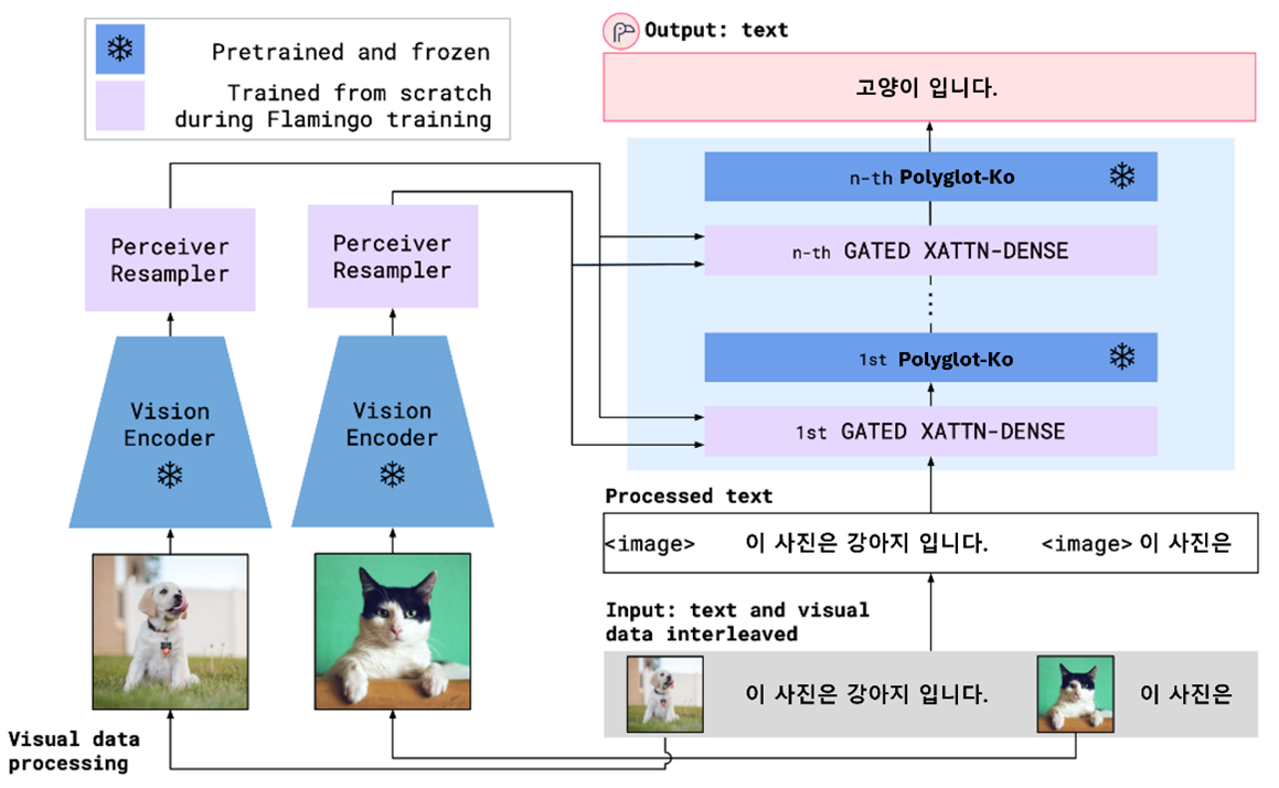 기존의 오픈소스 멀티모달인 OpenFlamingo를 활용해서, OpenFlaminKO의 구조를 만들었습니다.