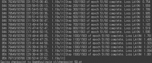 150만개의 데이터셋 기준으로 학습 단계에서 LAION-loss가 점점 낮아지는 것을 바탕으로, 학습은 잘 되고 있는 걸로 판단이 되었습니다.