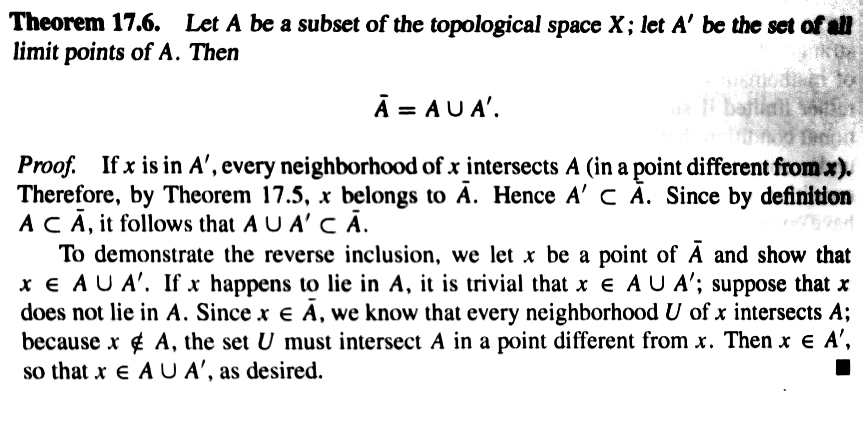 즉 어떠한 set A가 있을 때, 그것의 limit point까지 모두 포함하고 있는 set이 A의 closure이다.