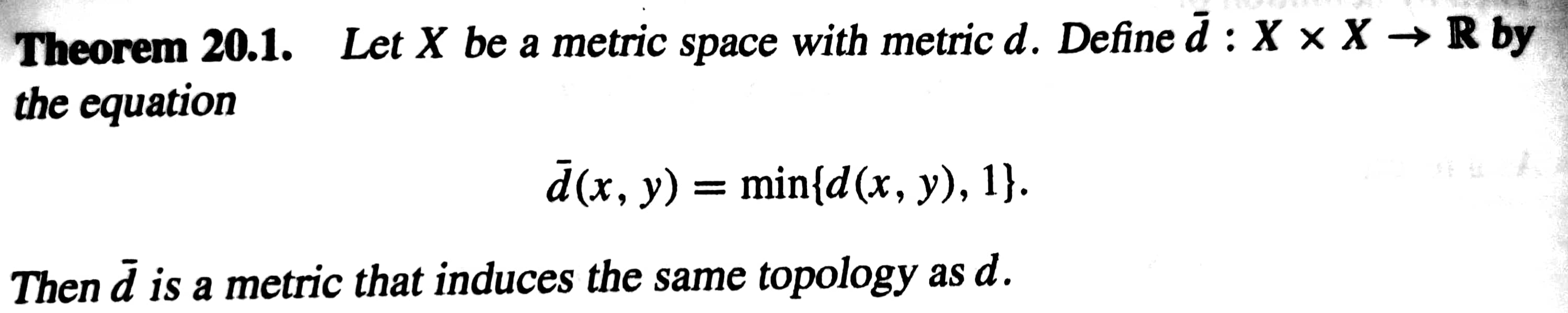Standard bounded topology는 기존의 정의된 metric d(x,y)와 1을 비교하여 minimum인 값을 고르는 것이다!
