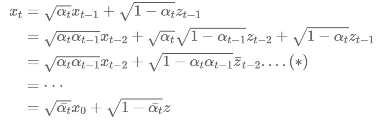 ) ## (평균*x0 + 표준편차*eta) # eta ~ N(0,1) ==> Diffusino 논문에서 소개하는 q(Xt | X0) 수식