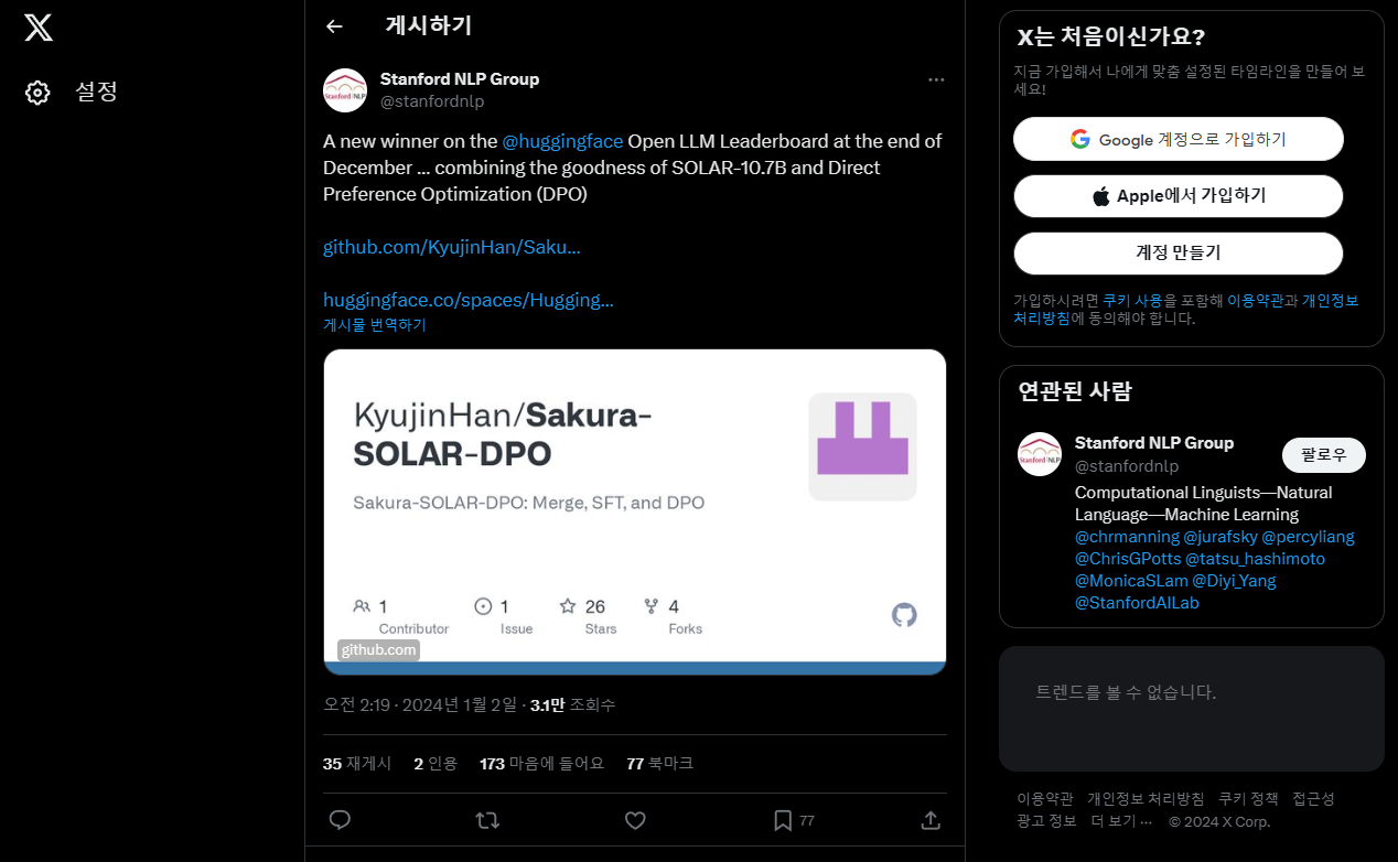 A new winner on the @huggingface Open LLM Leaderboard at the end of December … combining the goodness of SOLAR-10.7B and Direct Preference Optimization (DPO) https://t.co/ekxoxU8tpJ https://t.co/aNEaCAcCd4