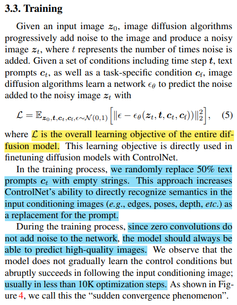 여기서 우리가 알 수 있는 사실은, first training step에서 ControlNet의 값은 기존 diffusion layer의 값과 동일하다는 사실이다!