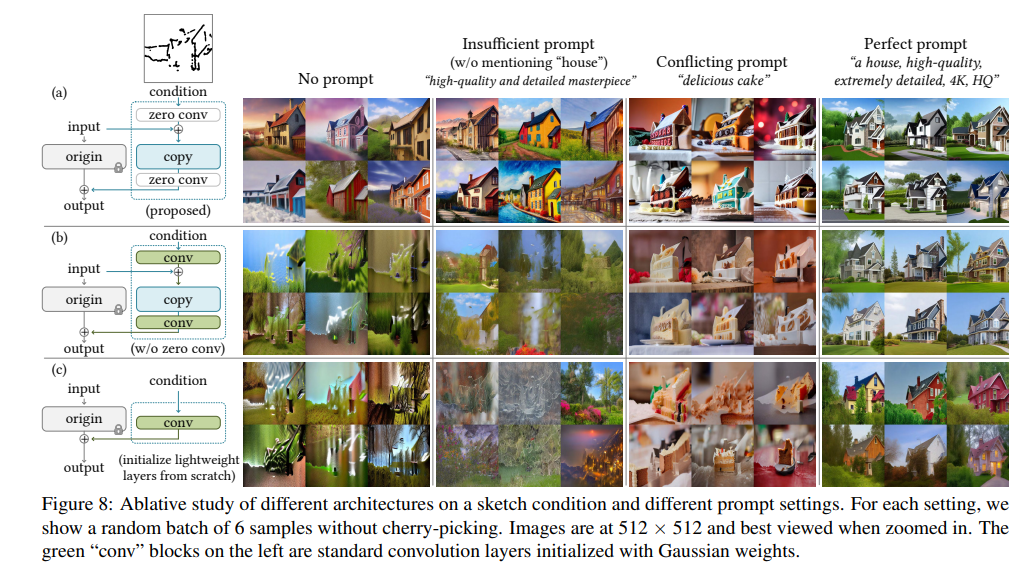 - Ablation study로, zero-convolution에 대한 효과를 보여주고 있다.