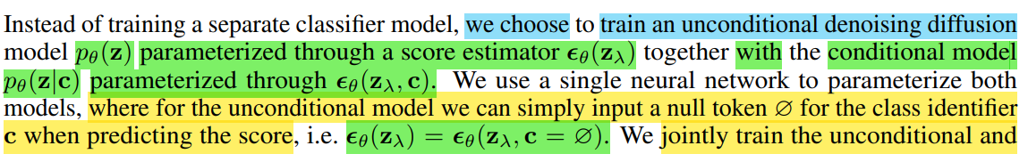 2. 여기서 unconditional model을 훈련시킬 때, 간단하게 null token을 추가한다.
