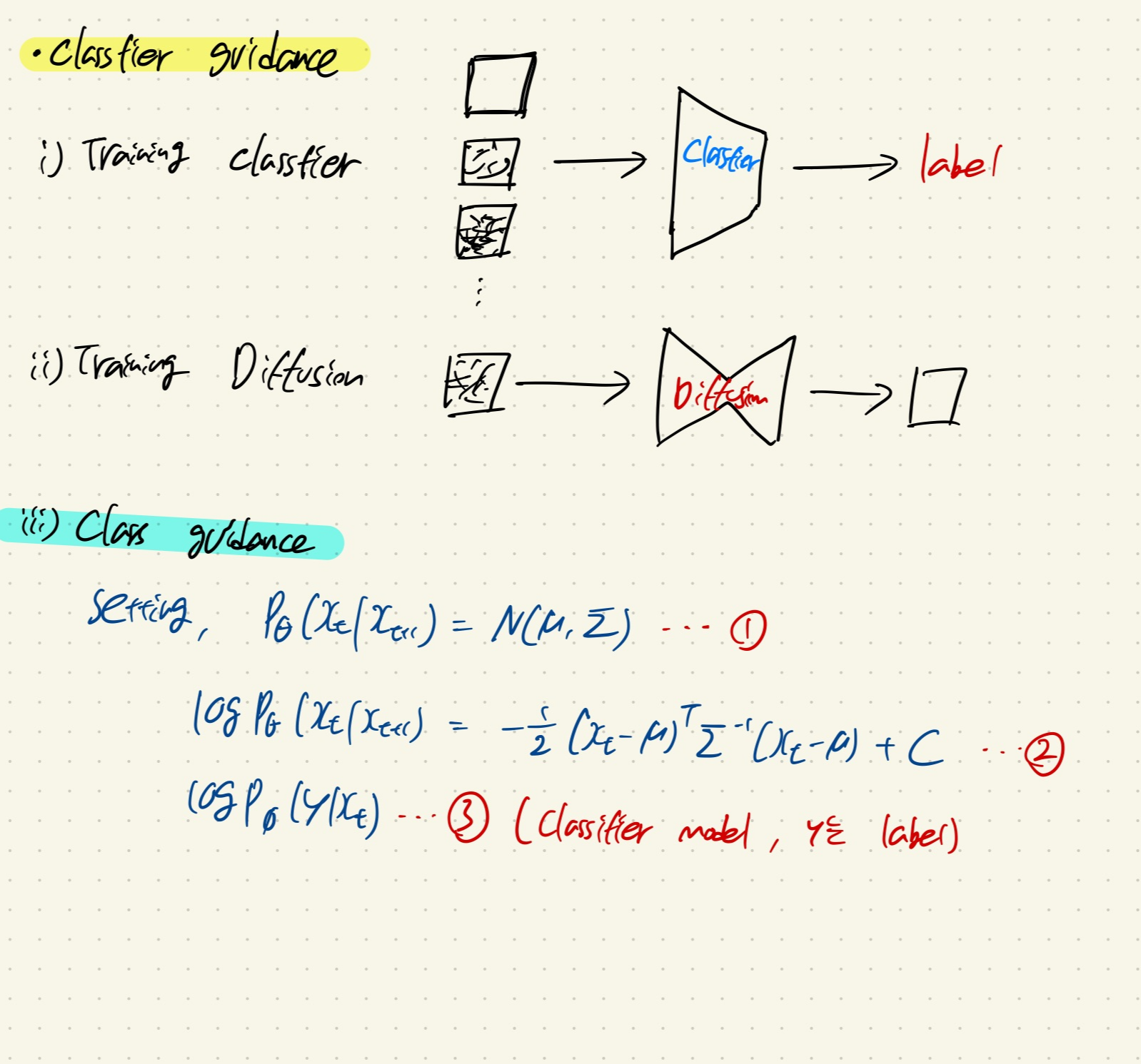 즉 unconditional Diffusion model만 가지고 특정한 라벨 c로 guide될 수 있도록 훈련하는 방법을 소개한다.