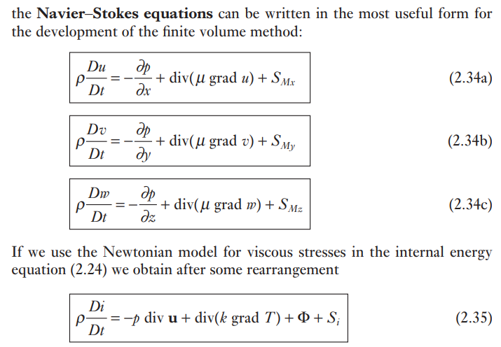 2.34 equation: x,y,z에 대한 momentum 수식입니다(u,v,w가 각각의 symbol).