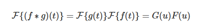 Fourier transform에서 이루어지는 합성곱 연산은, 단순하게 fourier transform을 적용한 각각의 함수의 곱셈과 같다는 의미입니다!