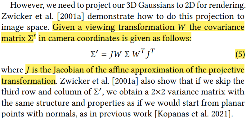 +) 3D gaussian이 2D gaussian으로 projection될 때 공분산 수식