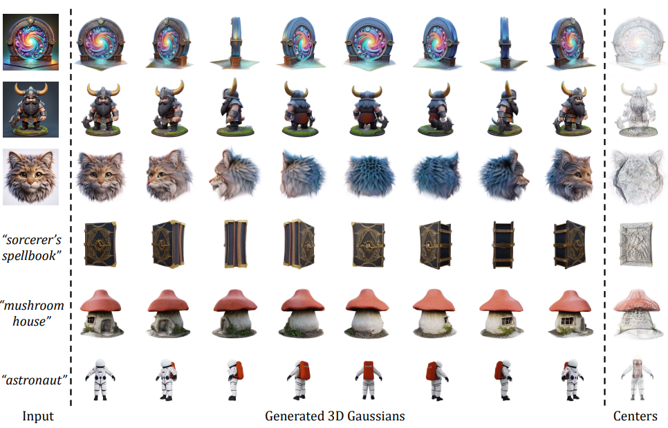 해당 모델은 single image로 3D object를 생성하는데, 신기한 점은 pre trained diffusion을 통해서 single view를 multi-view로 만들고 GS를 학습시킨다는 점이다.