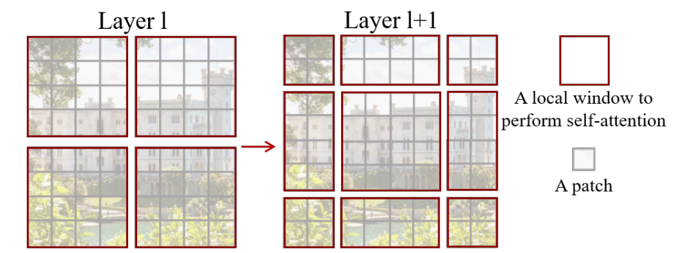 이미지는 근처 pixel끼리의 연관성이 매우 높기 때문에, 근처 patches만 이용해서 self-attention을 수행하여 연산량도 줄이고 세밀한 부분에서의 픽셀간의 연관성을 파악하기 위한 목적이 있다.