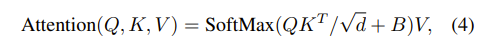 바로 Relative Position Bias(B)를 이용해서 attention 연산 과정 중에 더해주는 형태를 취한다.
