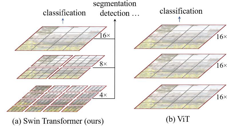이때 중간에 Patcdh Merging이라는 것이 있는데, patch를 합쳐서 크기를 늘려주는 과정이다.