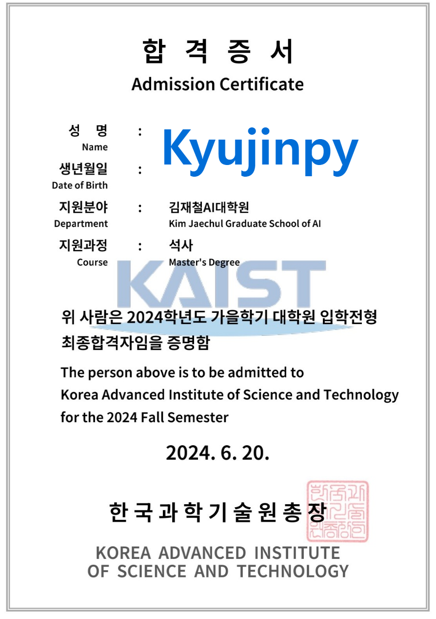 - 카이스트 김재철 AI 대학원 24년도 가을학기 합격!