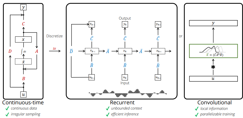 - State space layers를 RNN과 CNN에 적용시킨 형태를 보여줌.