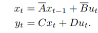 - X_k * C + u_k * D를 통하여서 output y_k를 정의.