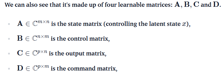 - A, B, C, D를 각각의 linear layer라고 두고 state space model을 디자인 함.