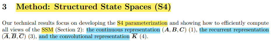 S4 논문에서는 지금까지의 모든 SSM 관점에 대해서 효율적으로 연산하는 방법을 제안하고 있다.