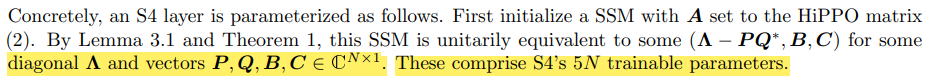 즉, S4는 총 5개의 trainable parameters(P, Q, B, C, diagonal)를 훈련하게 된다!