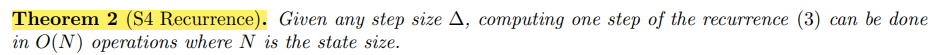 - 특히 S4 Recurrence의 경우 O(N)으로 정의가 된다.