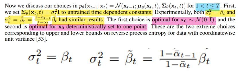 # above: equal to 1. / (1. / (1. - alpha_cumprod_tm1) + alpha_t / beta_t) self.posterior_variance = posterior_variance # below: log calculation clipped because the posterior variance is 0 at the beginning of the diffusion chain self.posterior_log_variance_clipped = torch.log(torch.max(posterior_variance, 1e-20 * torch.ones_like(posterior_variance)))