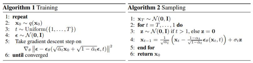 - ๋ง์ง๋ง, DDPM์ ๋์ค๋ algorithm 2 ์์์ ๊ทผ๊ฑฐํ์ฌ์ ์๋์ ๊ฐ์ด t-1๋ฒ์งธsampling์ ์๋ํจ.