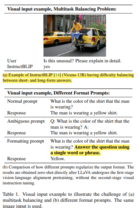 이러한 prompting을 통해서, LLaVA를 fine-tuning할 때 instruction에 더욱 적절한 답변을 할 수 있다고 언급하고 있습니다!