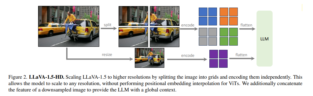 더 나아가서, LLaVA-1.5 모델이 336x336 보다 높은 resolution가지는 이미지를 훈련하기 위해서 새로운 network를 방법을 제안하고 있습니다!
