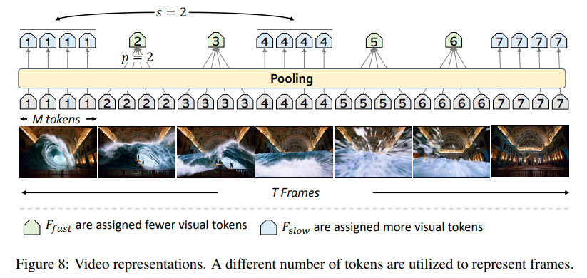 이러한 문제를 해결하기 위해서, LLaVA-Video에서는 slow-fast group을 설정하게 됩니다