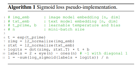 SigLIP는 비대칭적이지 않으며 전역 정규화 인자도 필요하지 않습니다. SigLIP는 시그모이드 연산을 사용하고 각 이미지-텍스트 쌍(양수 또는 음수)은 독립적으로 평가됩니다. 따라서 모든 GPU가 모