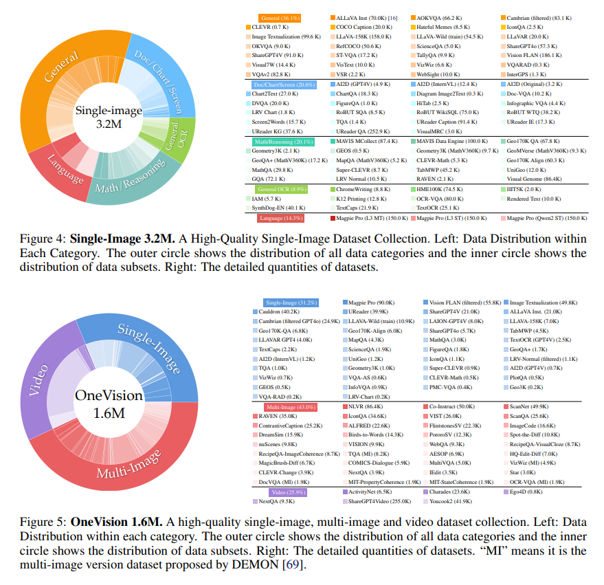 (OneVision은 single-image를 포함하여 multi-image, video dataset도 포함)