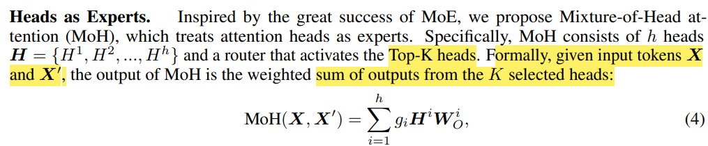 MoH paper: [2410.11842] MoH: Multi-Head Attention as Mixture-of-Head Attention (arxiv.org)