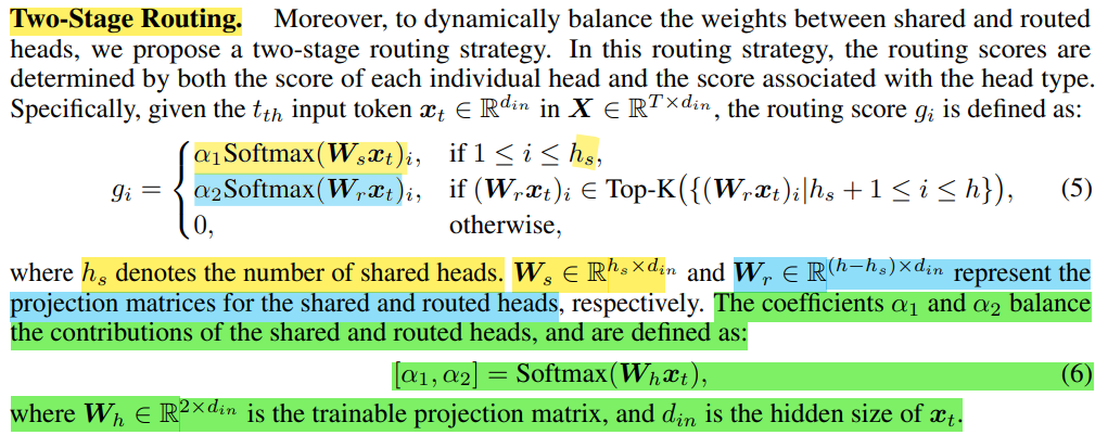 Routed heads에서는 기존 MoE 처럼 Top-K개를 골라서 점수를 매기고, 나머지는 0점으로 처리합니다