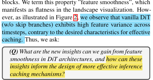 논문의 저자들은, 이러한 DiT의 feautre smoothness으로부터 effective한 inference mechanisms을 만들 수 있는지 고민했고,