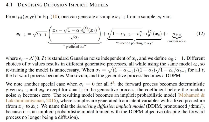 (이때 수식에서 sigma_t는 0으로 설정합니다. DDIM의 deterministic한 성질을 활용하기 위해)