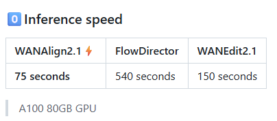 WANAlign2.1은 실제로 inference speed나 qualitative results에서 기존 방법보다 훨씬 좋은 성능을 보이고 있습니다.