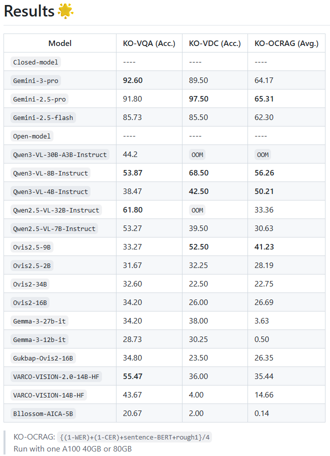 오픈소스에서는 Qwen based model이, closed-model에서는 gemini-pro 모델이 어마어마한 성능을 보이고 있기에 앞으로도 열심히 해야될 것 같습니다!