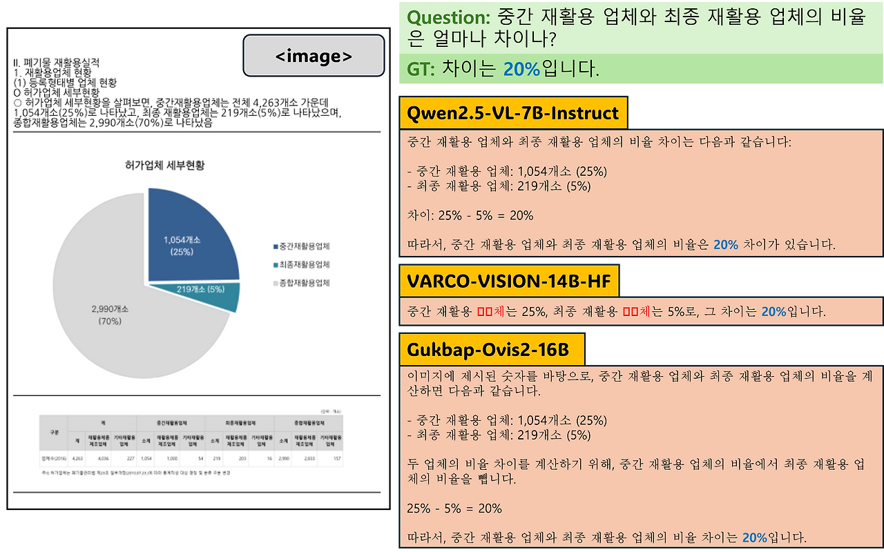 이를 활용해 국내/외 있는 Vision-Language Model (VLM)들의 한국어 문서 및 질문 이해 능력을 측정할 수 있습니다.😎