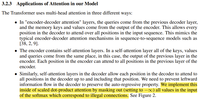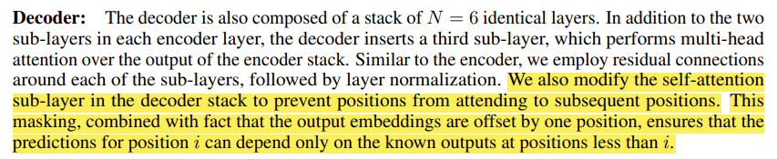 +) Masked-Multi-head-attention의 역할은 단어의 순서를 고려해서 그 다음 단어를 예측하지 못하도록 막는 역할이다.