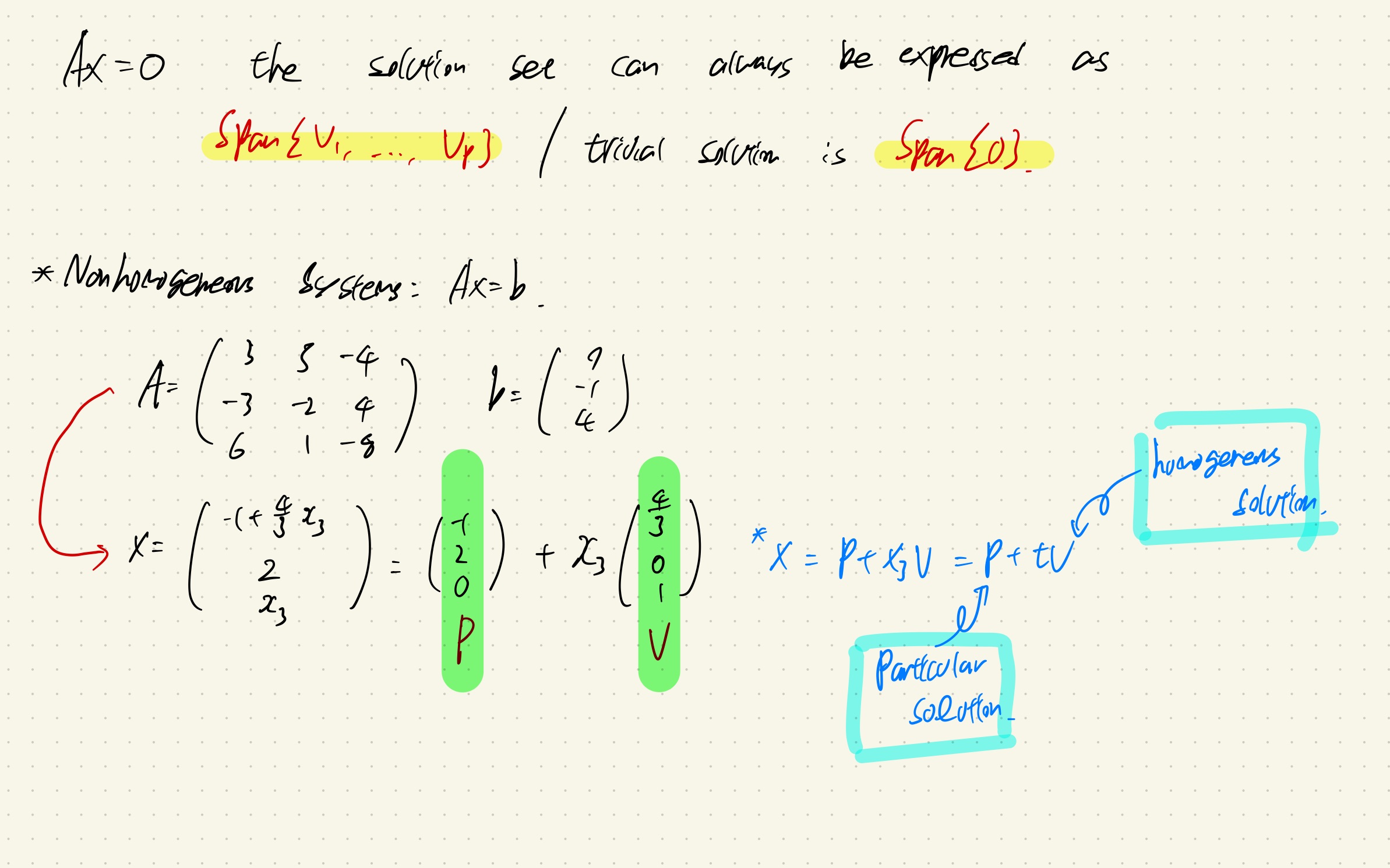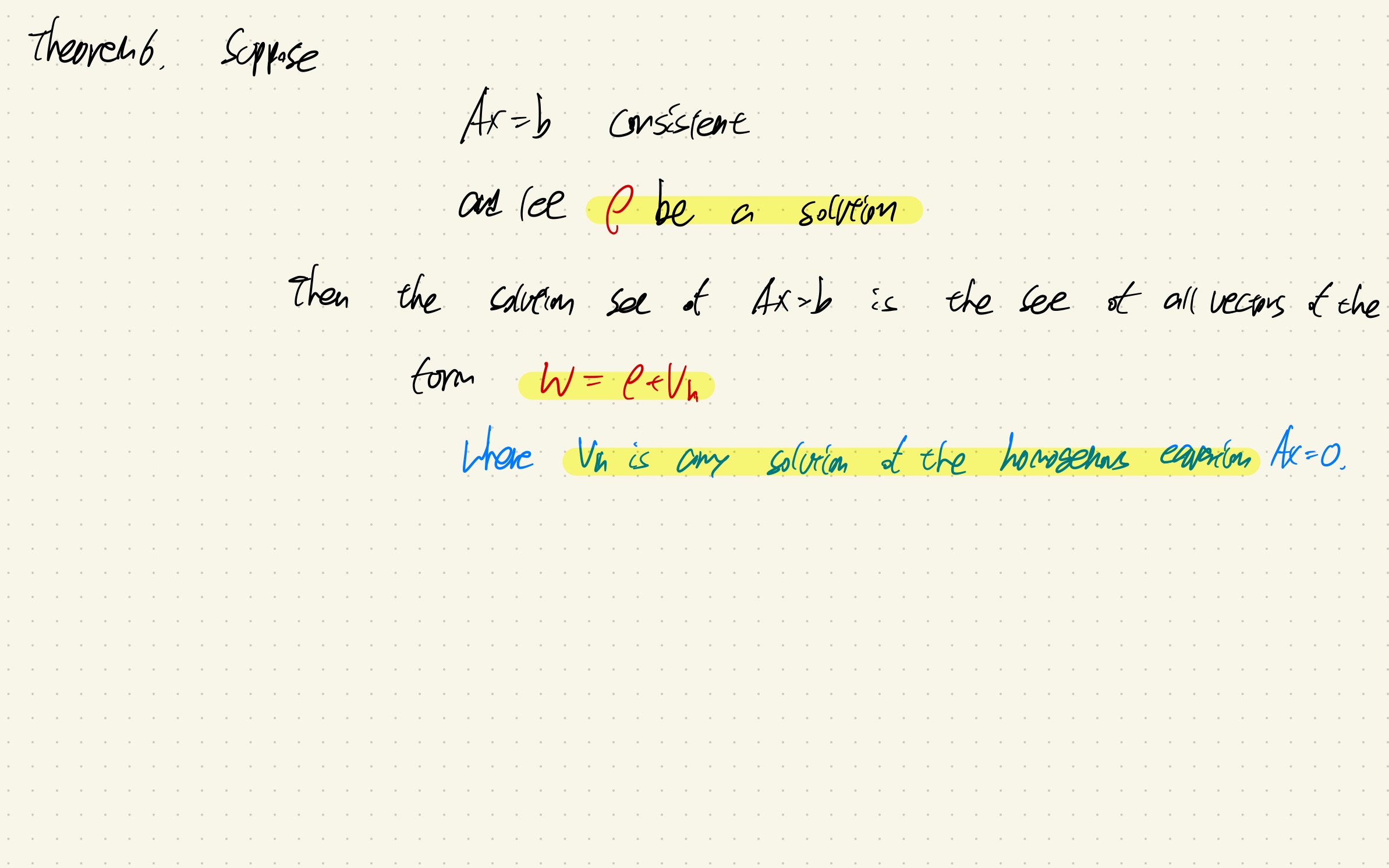 - Ax = b의 solution을 p라고 하고, Ax = 0의 solution을 Vh라고 하자.