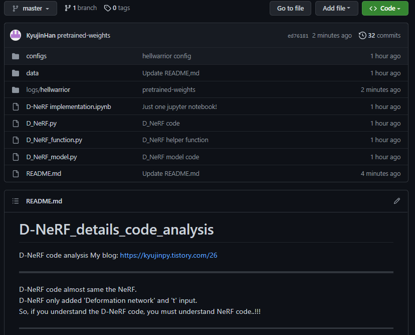 D-NeRF kyujinpy: https://github.com/KyujinHan/NeRF_details_code_analysis