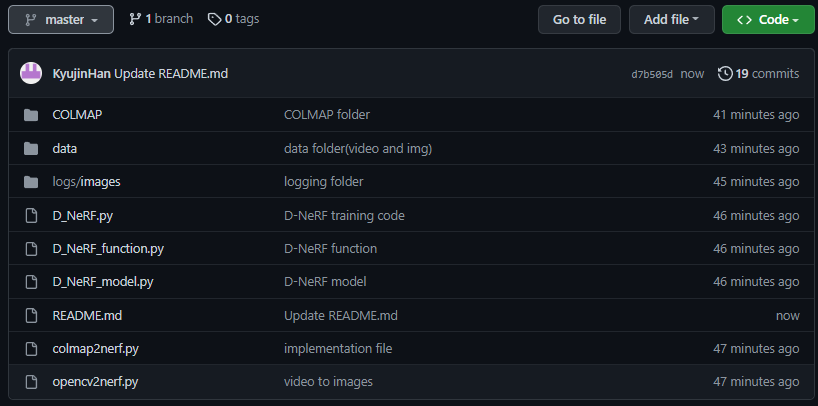D-NeRF code: https://github.com/KyujinHan/real_D-NeRF
