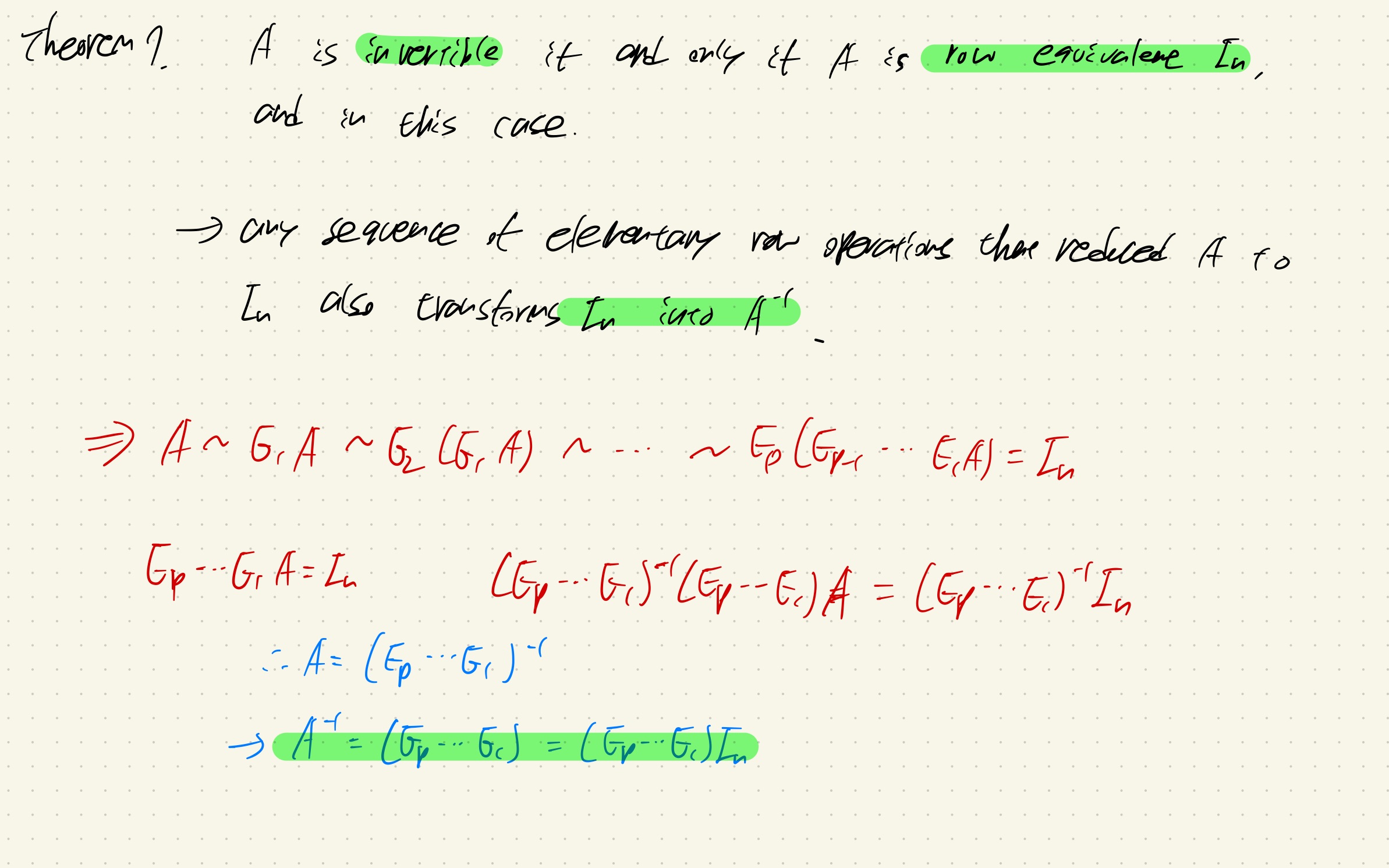 또한 A의 inverse는 elementary row operations을 수행하기 위해 계산된 여러 E matrix의 곱과 동일하다!