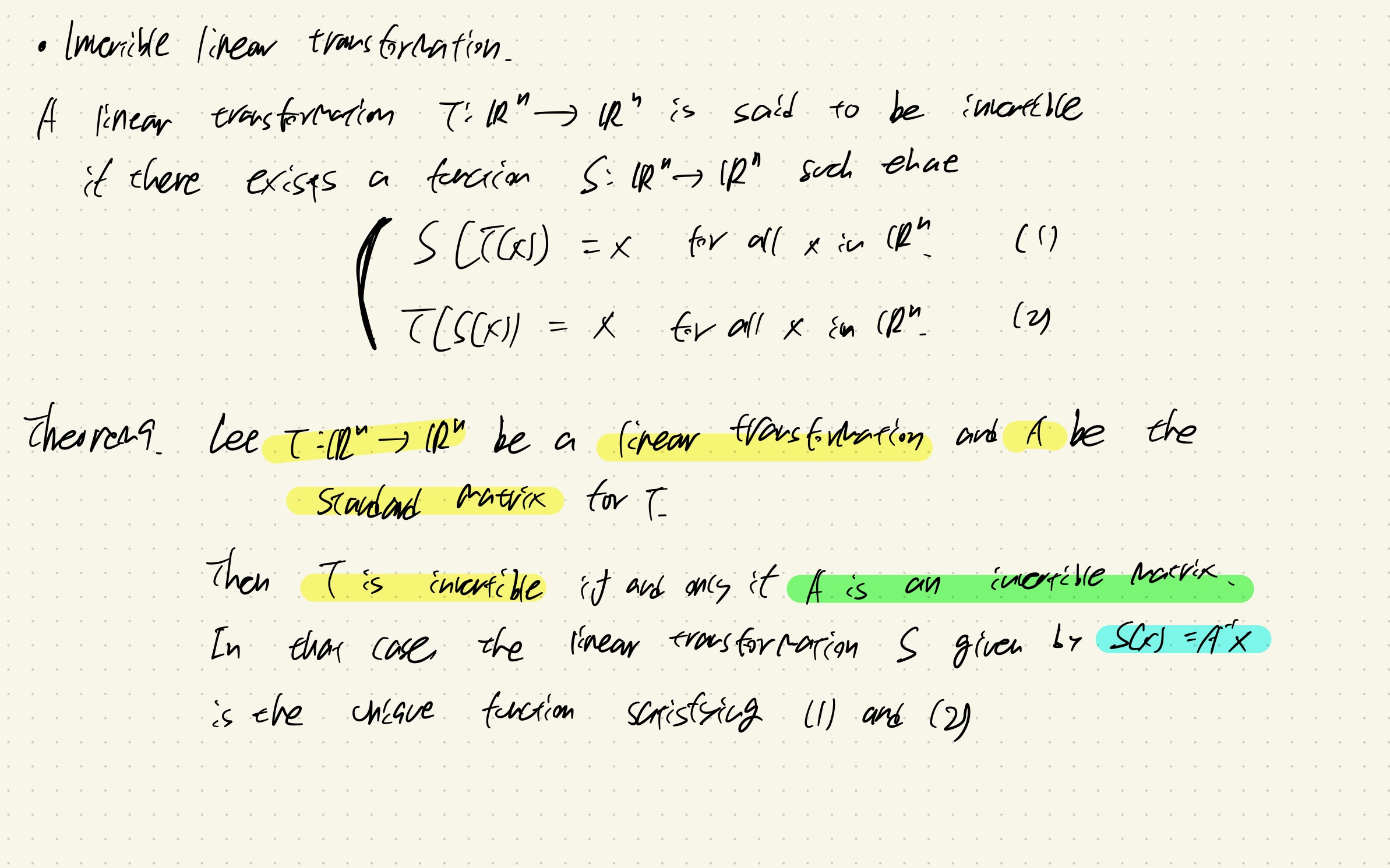 9. Linear transformation onto.(n pivor position)