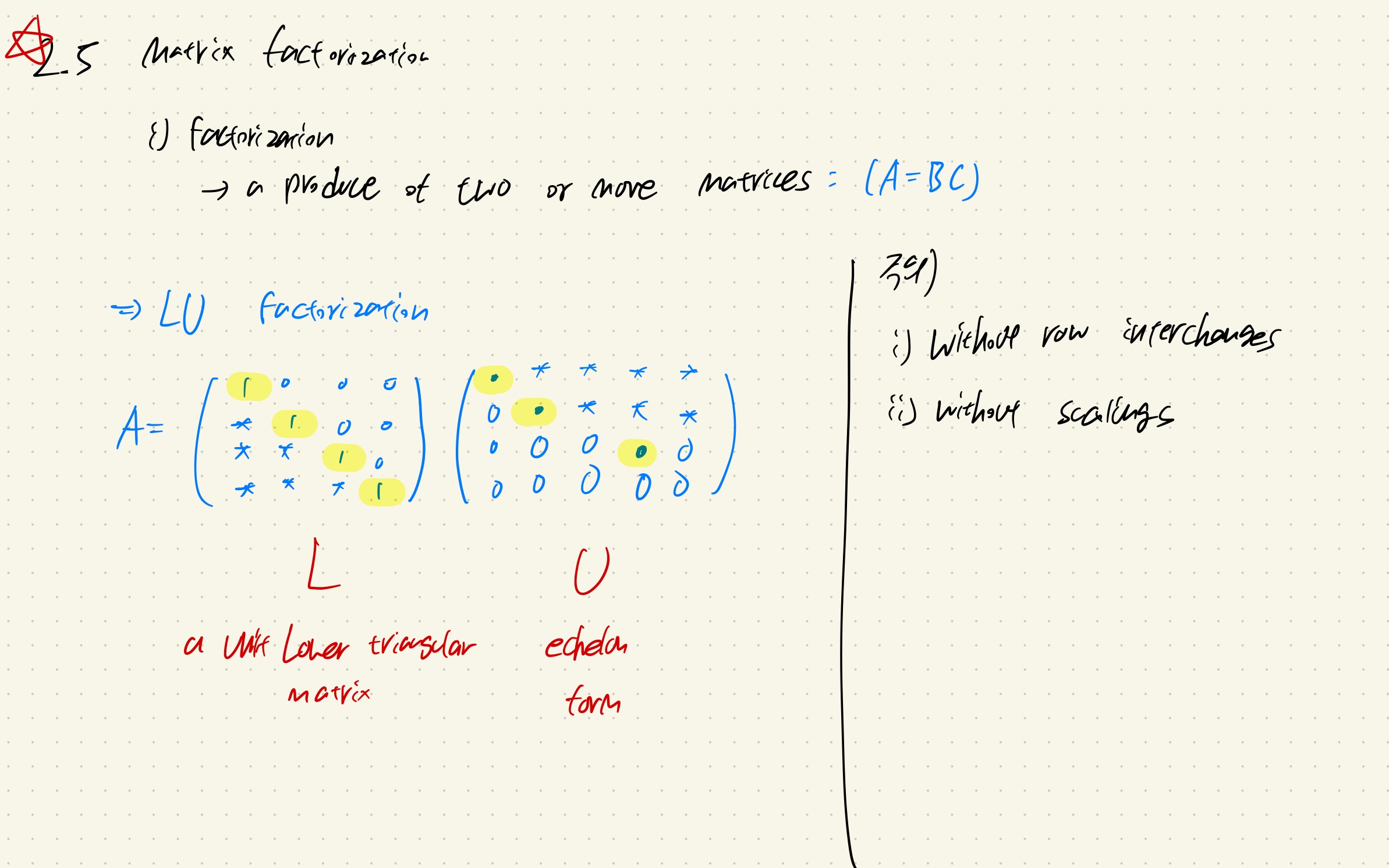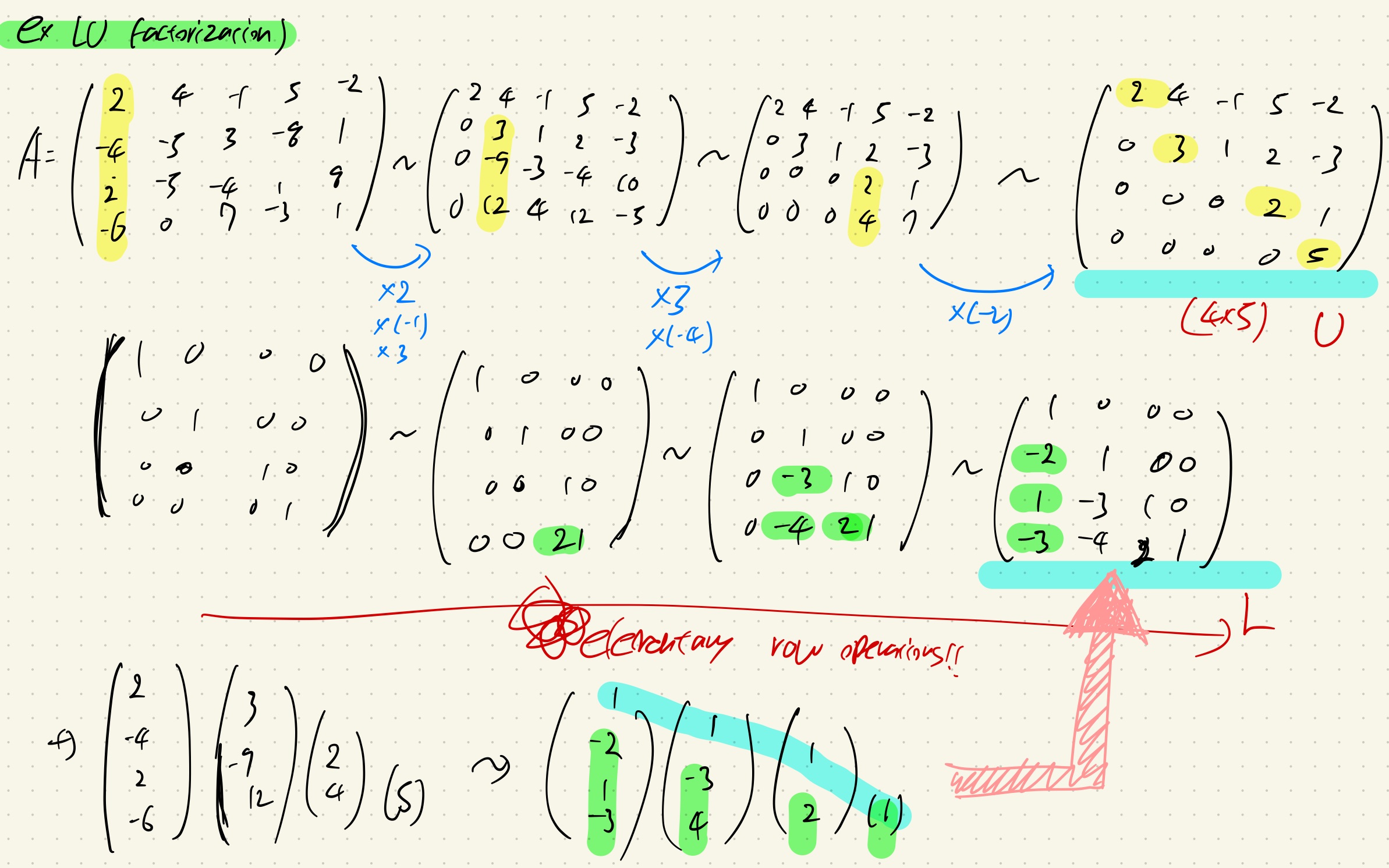 먼저 A를 elementary row operations을 통해서 echelon form으로 만들어준다. 이 form이 U가 된다.