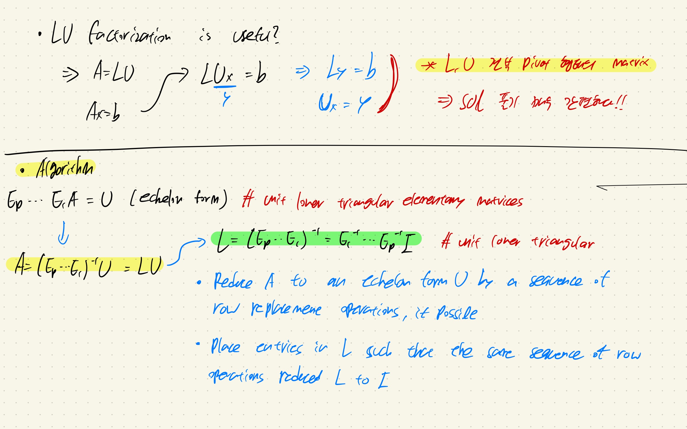LUx = b 연산에서, Ux를 y로 치환한다면,