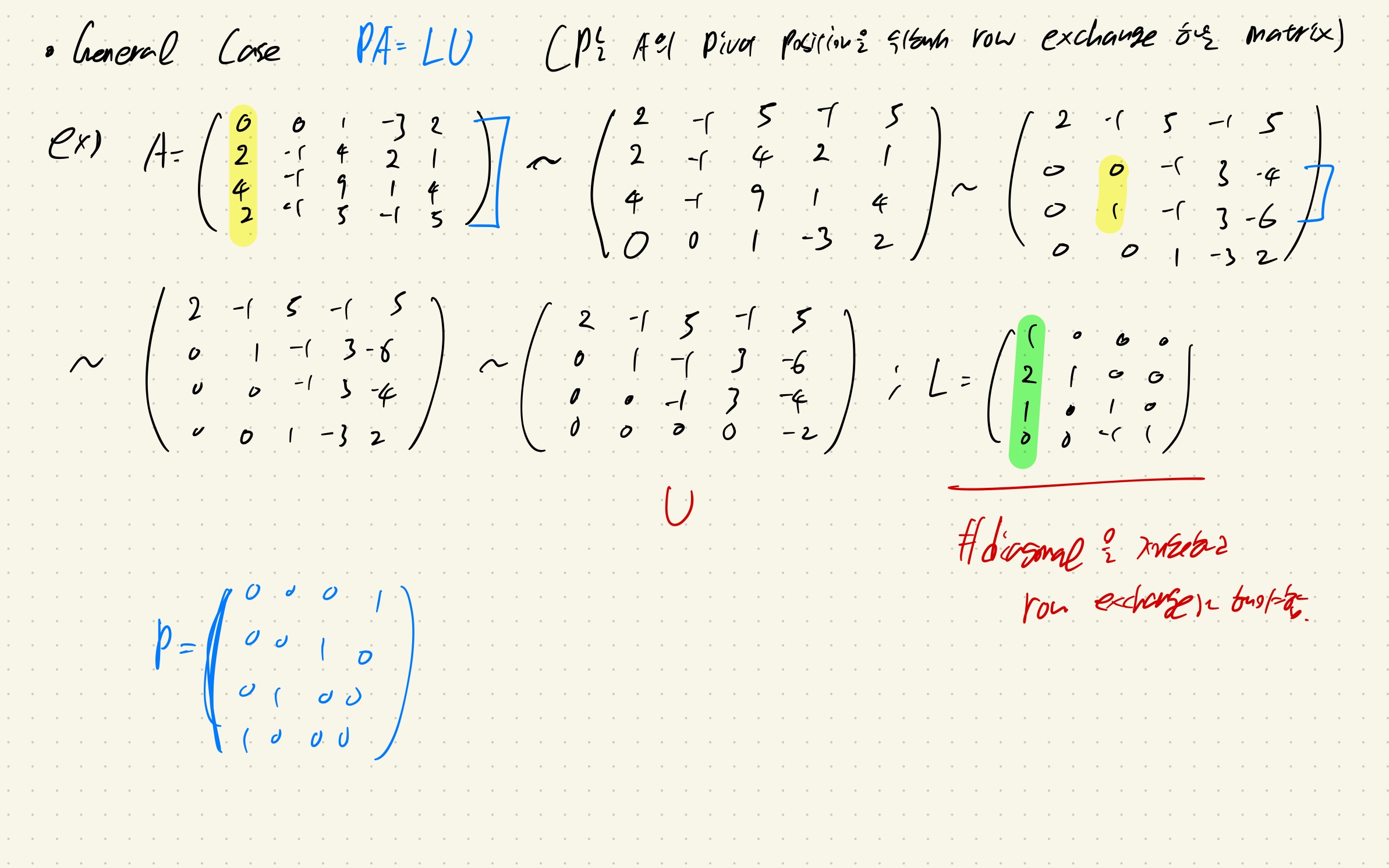 만약 echelon form을 만들기 위해서 행의 위치를 변경했다면, L에서도 변경해줘야 한다.