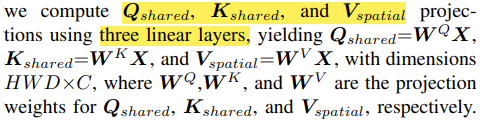 +) Qshared, Kshared, Vspatial, Vchannel는 X input에 각각의 가중치가 곱해진 형태이다.