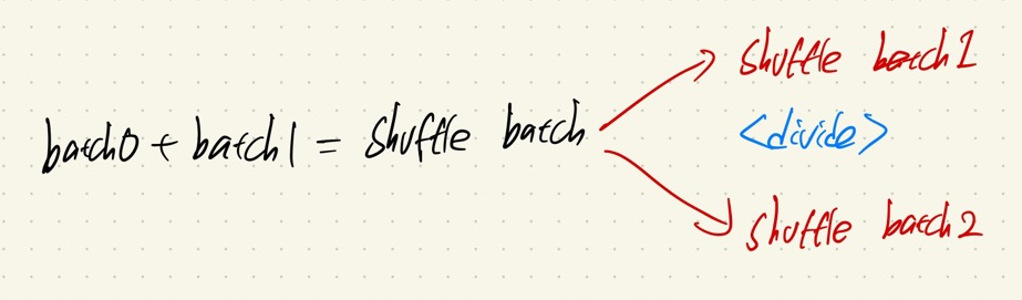 따라서 위에 처럼 각 GPU마다 이용되는 batch를 합친 후 섞어서 다시 divide한 batch를 Momentum encoder에 넣어줘서 학습을 진행하는 방식으로 위와 같은 문제를 해결하였다.