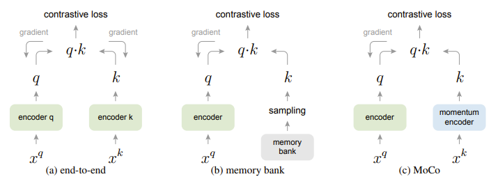 MoCo에서는 총 3가지 구조를 보여주면서 서로 비교를 했다.